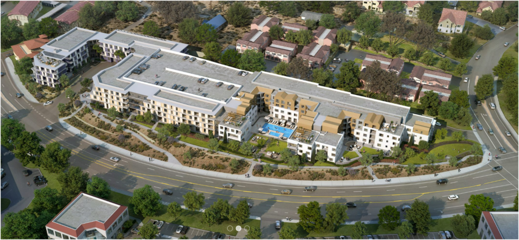Projects shown in color are the 15 Housing Element sites (HEU 2021) being built satisfy state mandates. These are the higher density projects with 15-20% of units reserved as ‘affordable’ (only for income qualifying tenants). 80% of units are ‘market rate’, or full price. Heights range from 3-6 stories tall. See list below.