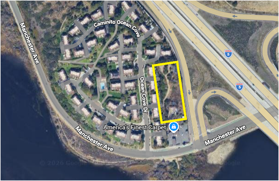 - LOCATION: Manchester Ave., between Ocean Cover Dr. and the freeway